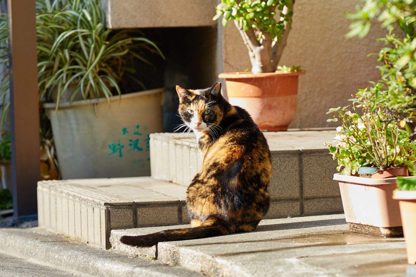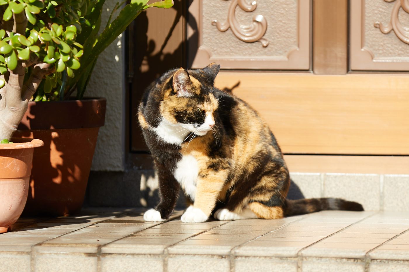 三毛猫(♀)ちゃんがジーっと見つめるその先に…