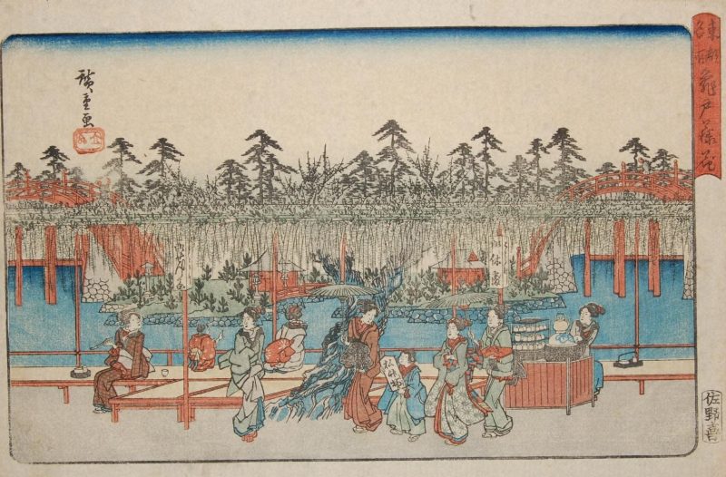 歌川広重「東都名所 亀戸藤花」 天保12年から13年 足立区郷土資料館収蔵資料データベースより