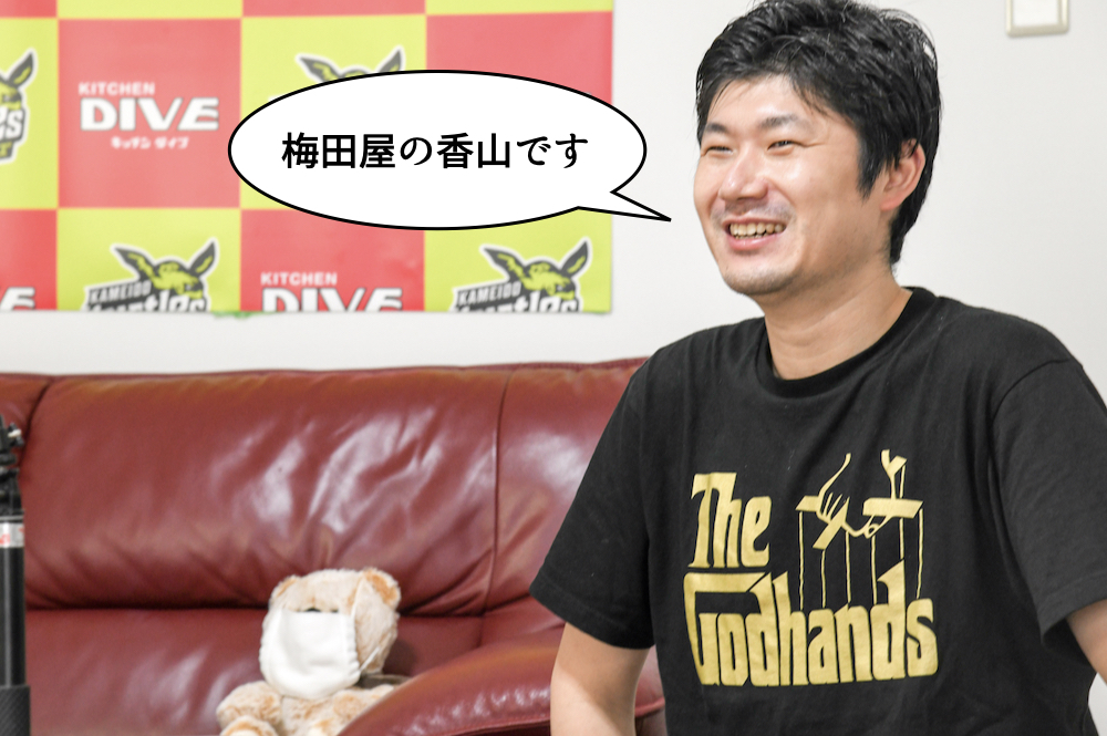 「香山です。亀戸の『巨人・菅野』と呼ばれてます(笑)。今日は亀戸から天ぷらを届けに参りました」