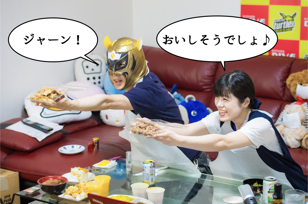 亀戸の人気お弁当店「キッチンDIVE」のYouTubeスタジオで行われたコラボ企画「カメイドタートルズ × キッチンDIVE 亀戸大食い町おこしプロジェクト」もついに第3弾。