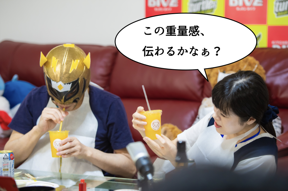 「何か、粗ごしネクターみたいな。かなり重いですね〜」