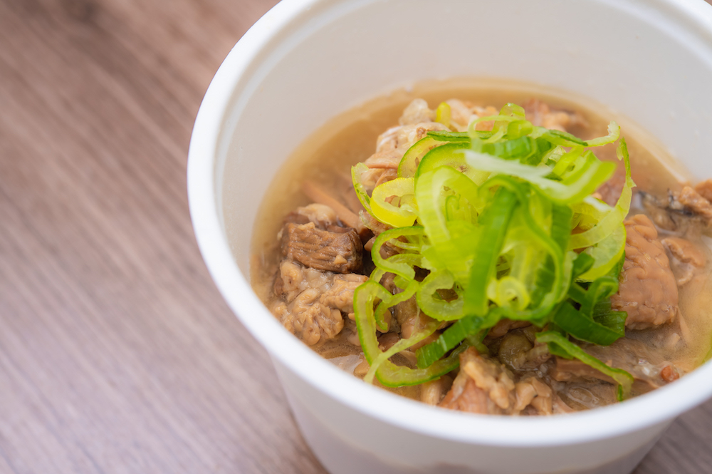 「それから、手前にあるモツ煮込み、こちらは180円です」