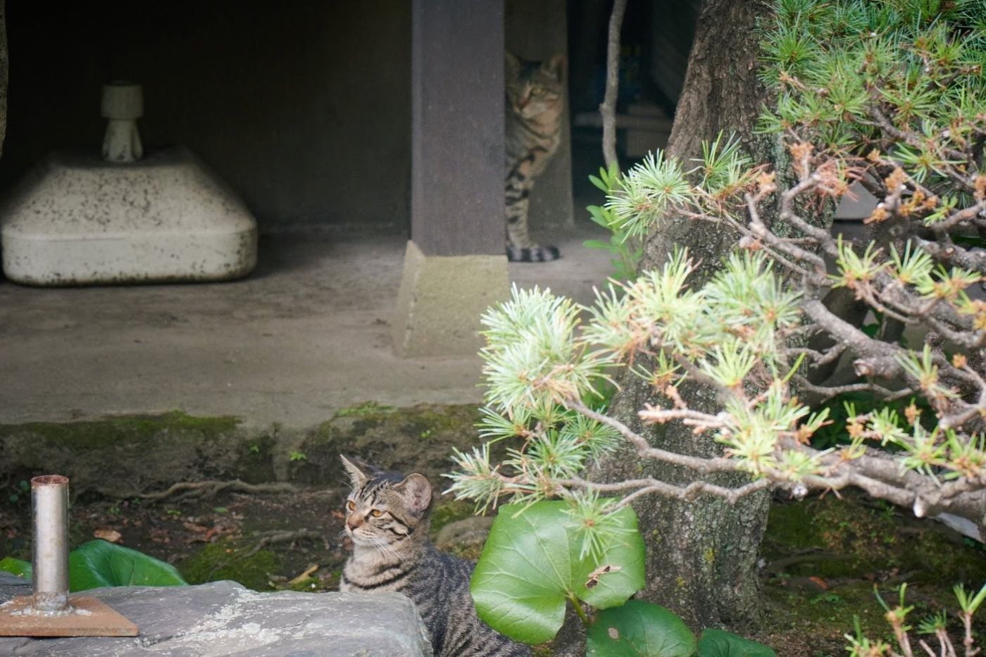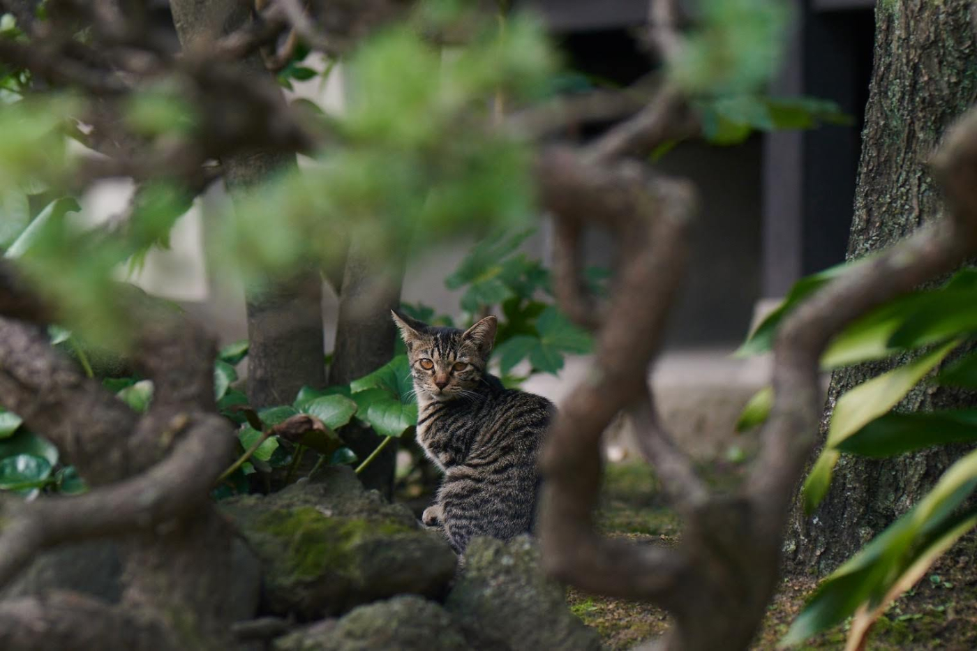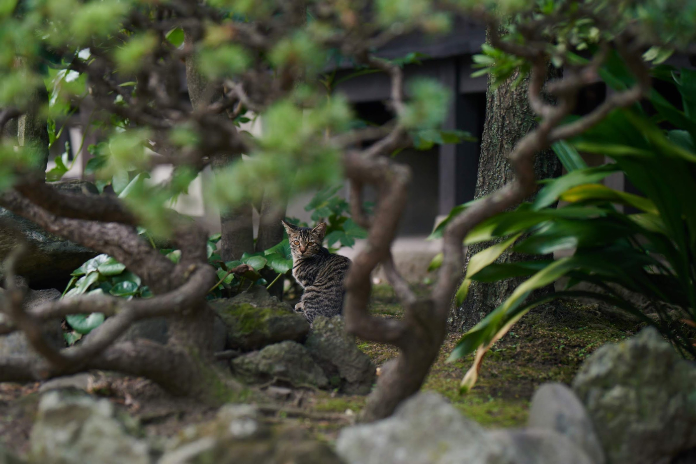 自分と松の木と苔むした石とで完璧な「和」の絵面をつくり上げていた。クールジャパンキャットだ。